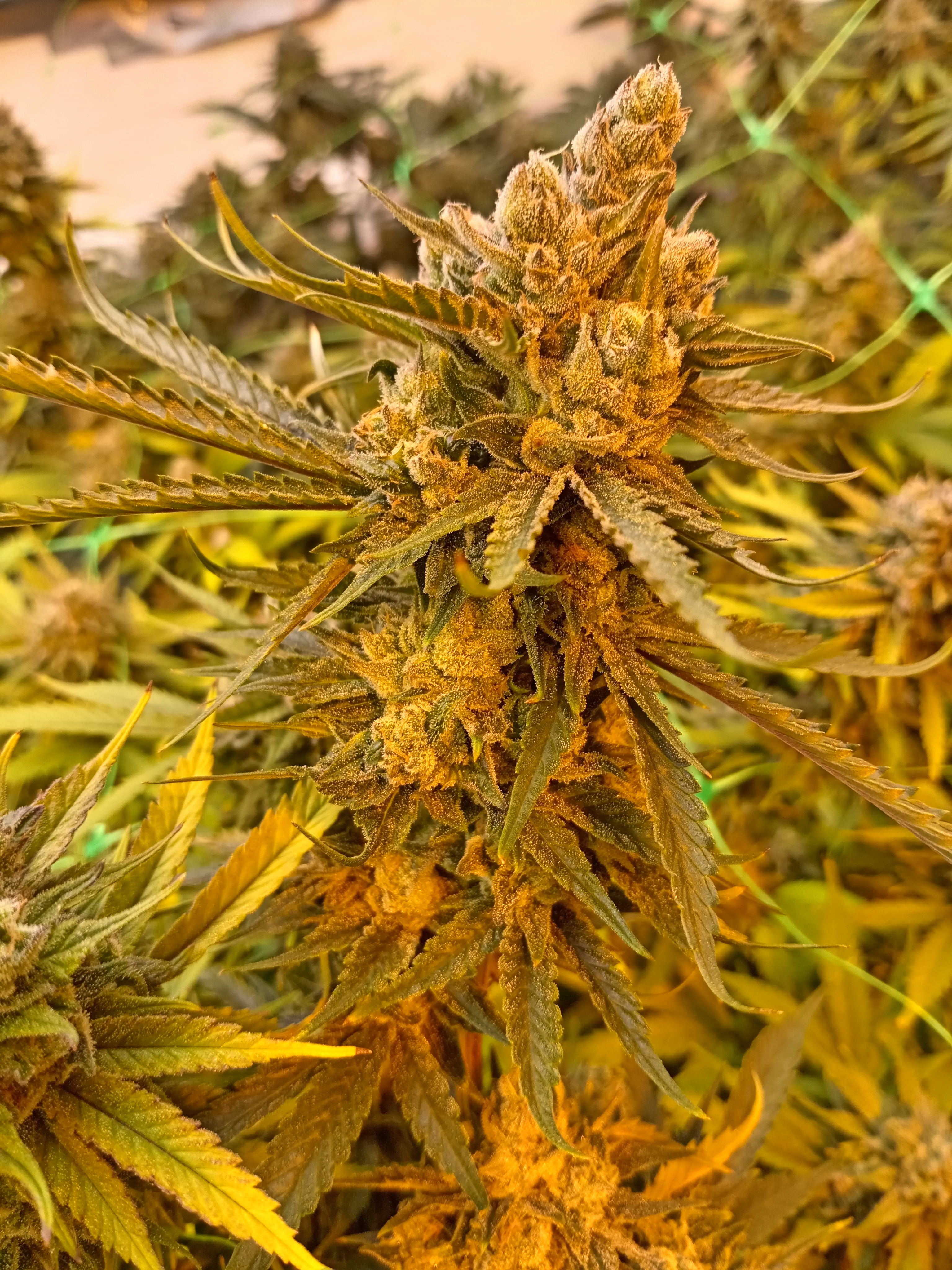 The Mother is a stinky blues heavy heady weed smell, it tastes so like cheese (Cheesy, and a sweet, a very distinguished flavour, hard to put a label to, other than delicious.) Tasty as feck, and at ten week it makes you understand what you are missing in weed these days.)Inhale is beautiful and the exhale is another taste sense that is different and addictive. You will be rolling a joint whilst smoking a joint, it is that moorish. Not a Candy, and not a Gas, more exotic and appealling than just a flavour.